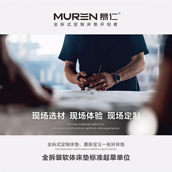 據慕仁創始人曾總稱慕仁是2016年扎根佛山龍江,從床墊材料供應切入家具行業,他洞察到傳統圍邊床墊售后難、材料不透明等痛點,2020年毅然轉型聚焦全拆定制床墊賽道。打造出全拆式床墊,實現面層可拆洗、軟硬度可調節,拉鏈結構減少膠水使用,兼具環保、衛生等優勢,材料全透明化更滿足消費者知情權,真正解決用戶睡眠使用痛點。